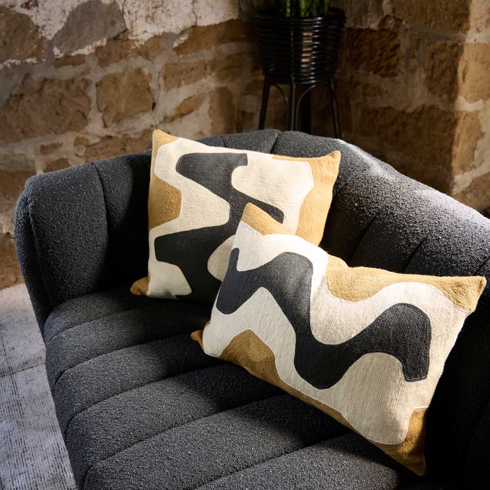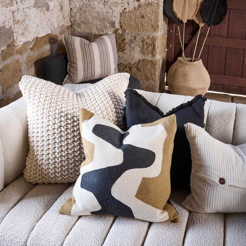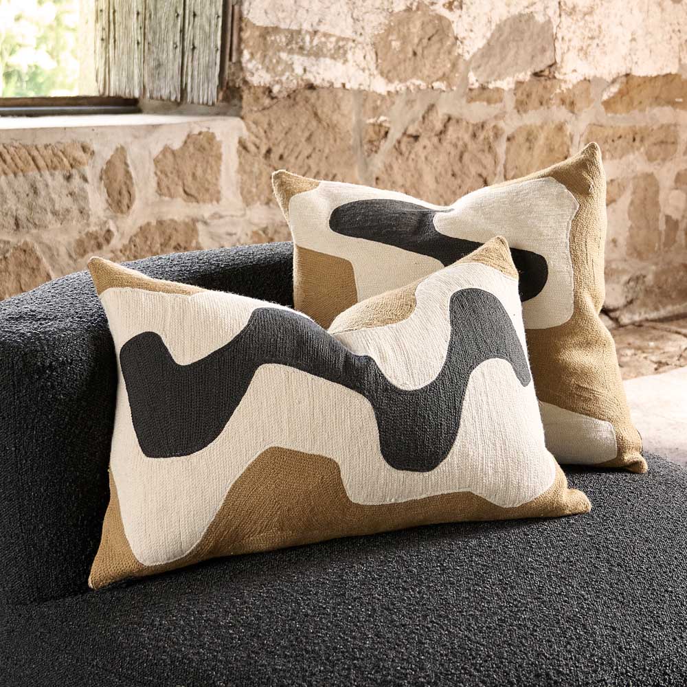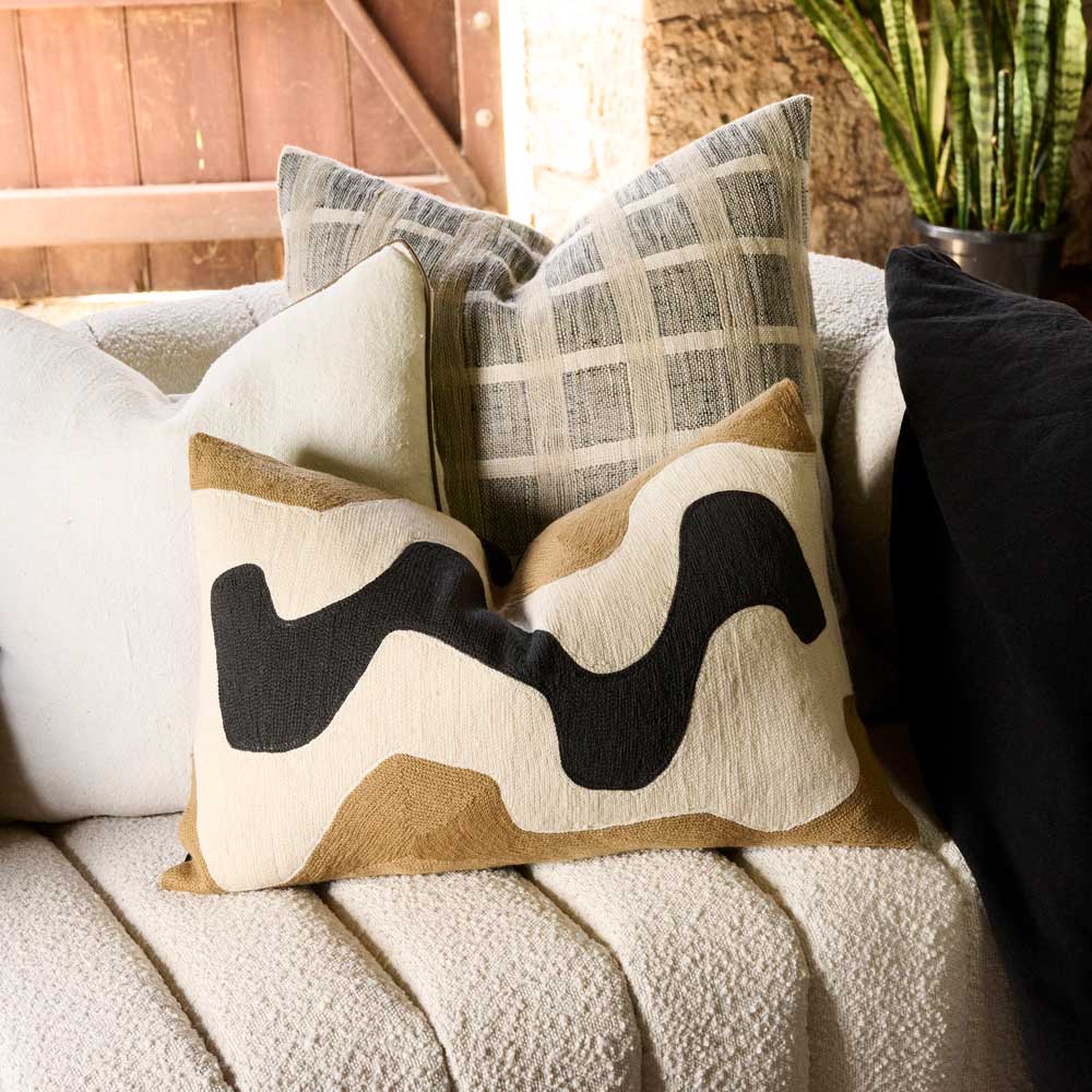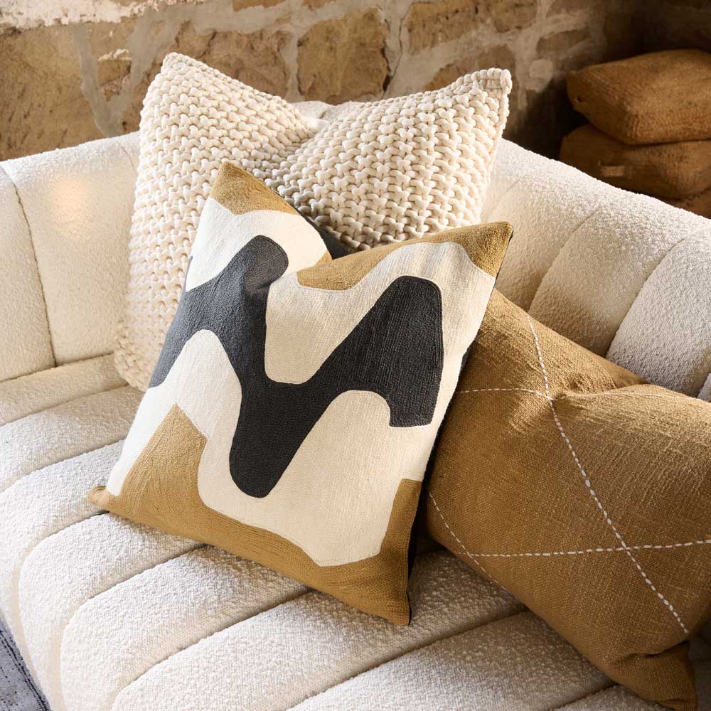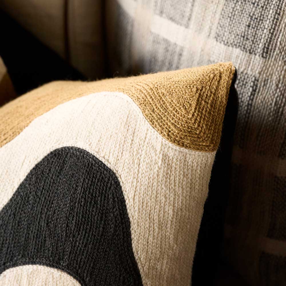 Our divine new Fylix cushion is like poetry in motion. Each piece is lovingly crafted in the mountains of Kashmir, India. The face of the cushion is hand embroidered with 100% woollen yarn whilst the backing is 100% linen. The Kashmir grown wool is spun and dyed by hand then transformed into an artwork, The unique hand dying and hand embroidery technique employed by our artisans takes three days to craft each cushion and makes every one slightly unique. Fylix is a one of a kind, thoughtful piece you'll treasure forever.