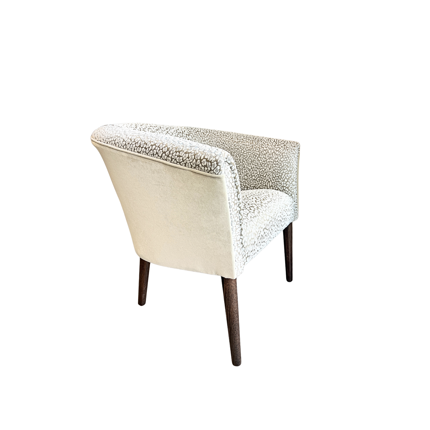 A timeless tub chair designed for everyday comfort, featuring supportive lumbar shaping and an inviting curved silhouette. Elevated on tall timber legs, it offers a light, elegant profile while providing excellent support for relaxed seating. Choice of leg shape, conical for a modern look and square for a classic look.