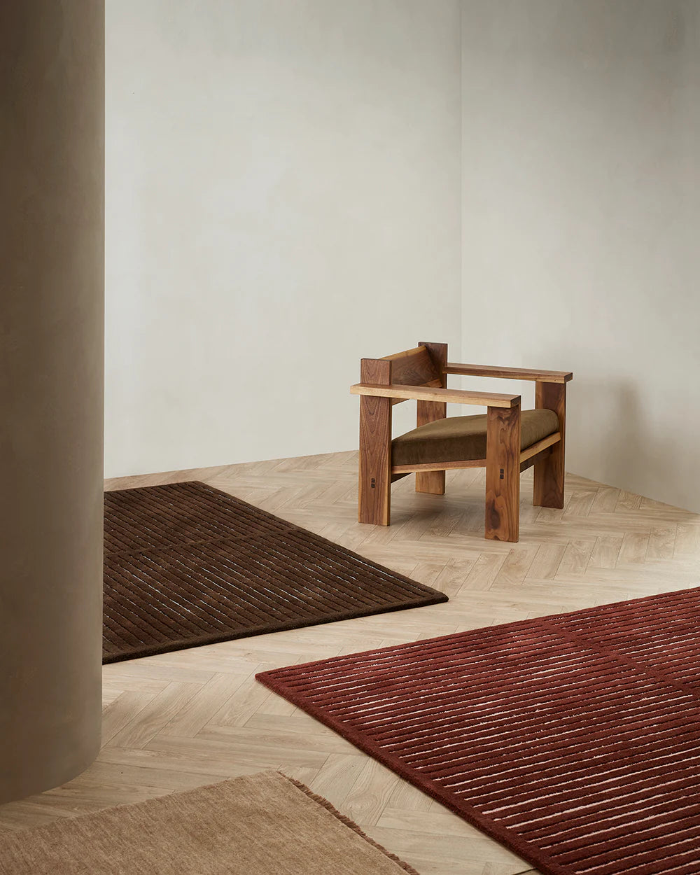 Sculptural, bold and deeply tactile, the Marlow rug is crafted from 100% New Zealand wool with a high–low pile that creates dimensional texture and sculptural depth. Its burgundy and pale pink colour pairing brings a confident, modern mood that anchors a room with intention. Where neutral rugs soften and recede, Marlow defines the space—grounding interiors with warmth, character and undeniable presence.